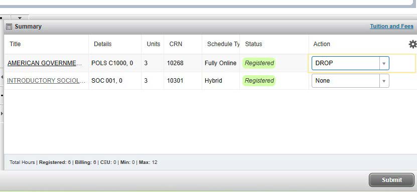 If you’ve paid your fees and need to drop, look for the Critical Dates for each course by visiting the schedule of classes and clicking on the CRN of the course you would like to drop. Dates to keep in minds are Last day to drop with a refund and Last day to drop with a W.